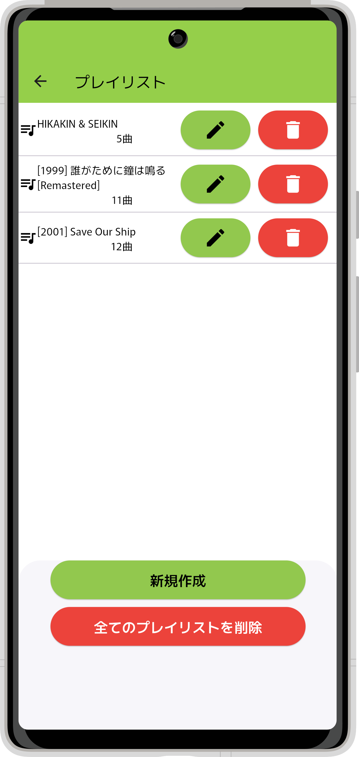 プレイリスト一覧画面