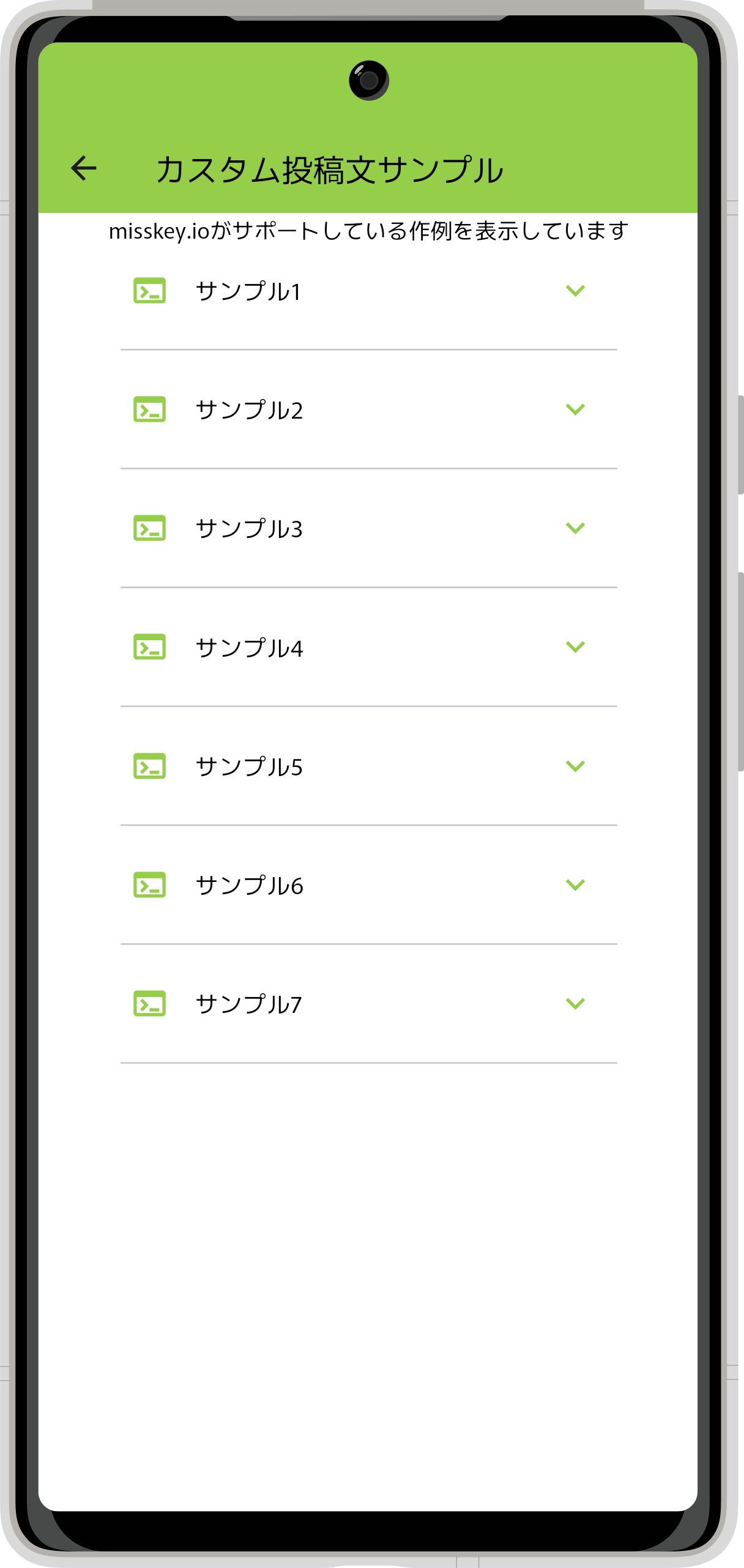 で投稿文パターンを「カスタム」にし、作例を見るを押下することで表示される画面です。