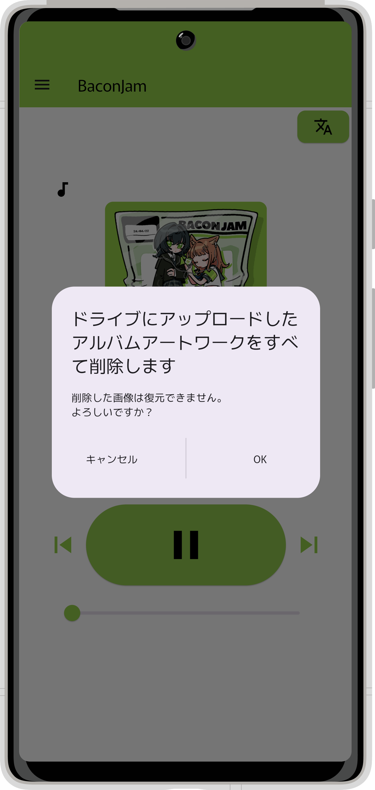 Ver 1.7.2以降のBaconJamを使用してアップロードしたアルバムアートワークのみが削除対象となります。古いバージョンをご利用の方はアップデートされることをおすすめします。