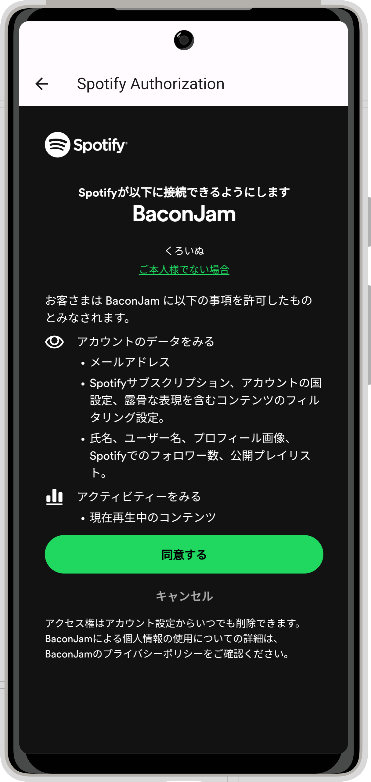 同一のSpotifyアカウントであれば、BaconJamをインストールしていない端末(PCなど)で音楽を再生している場合でも検知します。