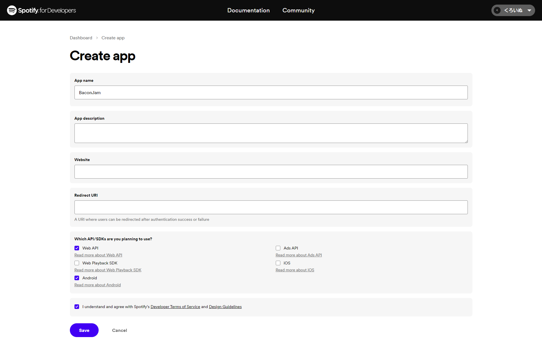 SpotifyとBaconJam接続用appの作成