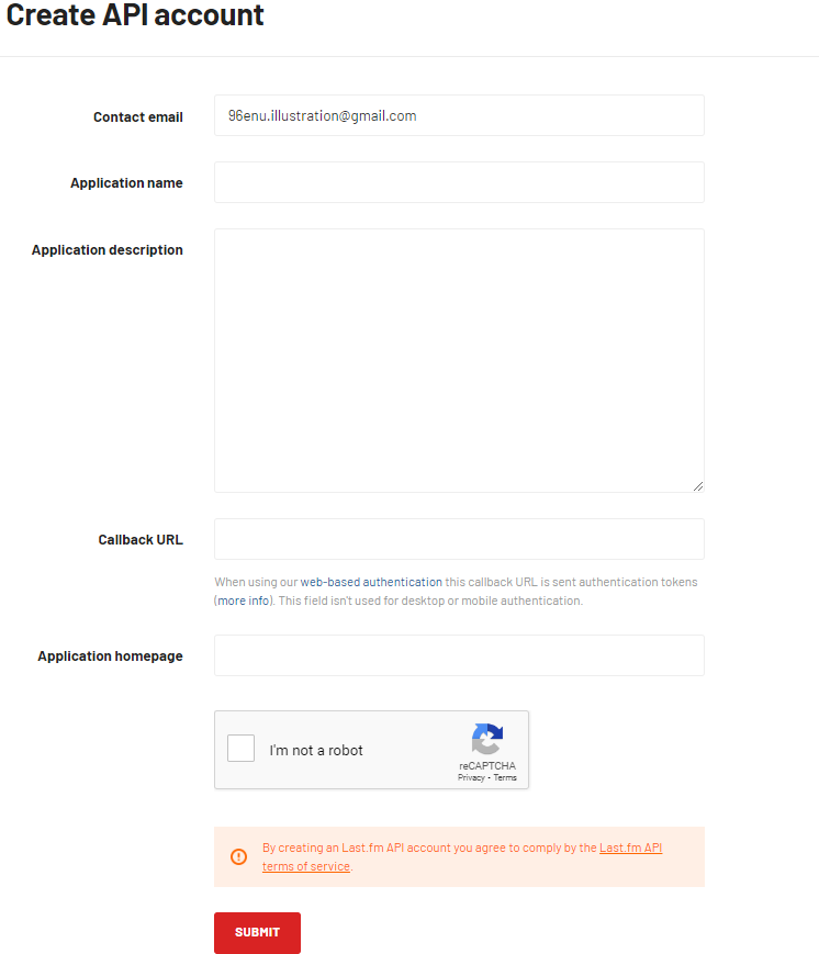 last.fmアカウント作成時に使用したメールドレスが初期設定されているので、そのままで構いません。 |