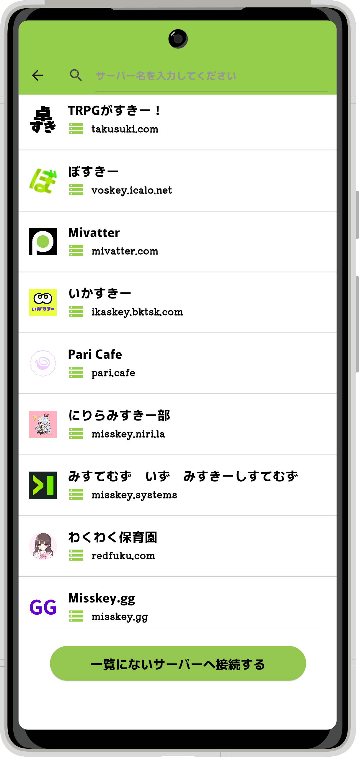 - 一覧にないサーバーへ接続するボタン